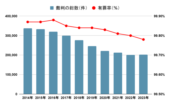 2023年の刑事裁判の有罪率は約99.8%